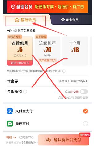 2、点开会出现一个开通会员的界面,如下图所示,有基础会员,黄金会员两项,基础会员虽便宜,但是没有什么用,不建议开通。