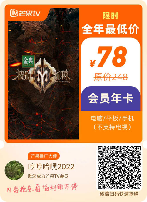 限时抢:芒果tv会员78元一年,2022年双十一芒果tv3.2折低价促销优惠活动,自从芒果tv会员涨价到248一年后,已经很久没有这么便宜的活动了,78一年全年最低价了,没有比这更低的了,一天只要2毛钱。