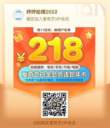 白嫖如果都不成功的话也可以考虑优惠开通爱奇艺会员,也是非常划算的年费一年不到一百