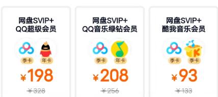 QQ音乐联合会员:百度网盘svip+QQ音乐绿钻会员 百度文库+QQ音乐年卡