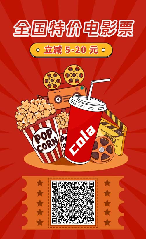 那么,重点来了,怎么买便宜电影票呢?今天小编给大家推荐一个很好用的电影票优惠购买平台,平台经常推出特价票优惠、限时折扣、满减活动等等。想看电影的朋友们可以扫码下方海报或进入活动页面查看电影票价格。